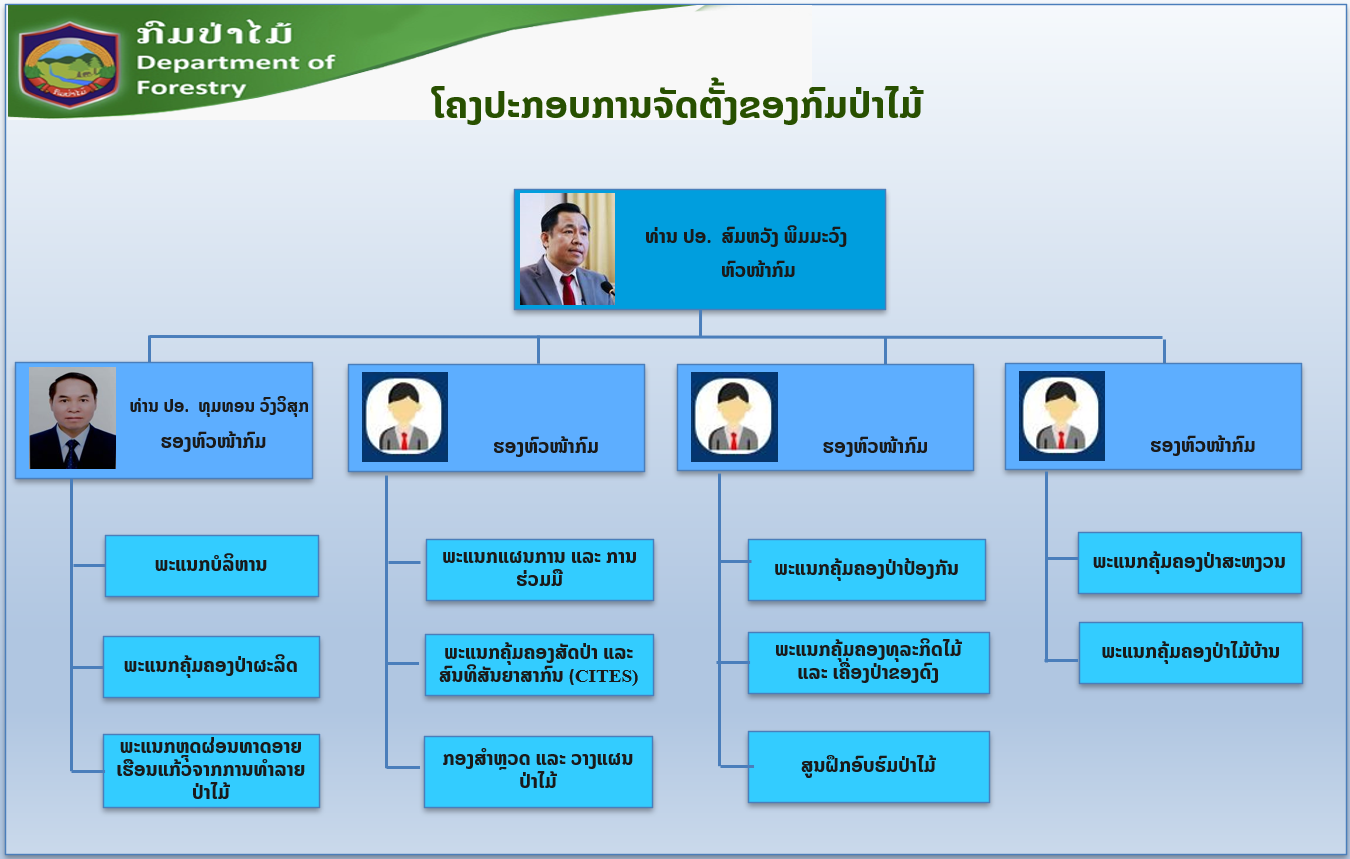 ວິໄສທັດ: ປ່າໄມ້ ແລະ ຊັບພະຍາກອນປ່າໄມ້ ມີຄວາມອຸດົມສົມບູນ ເປັນທ່າແຮງ ໃຫ້ແກ່ການພັດທະນາເສດຖະກິດ-ສັງຄົມຂອງຊາດ, ປະກອບສ່ວນ ປັບປຸງຊີວິດການເປັນຢູ່ ແລະ ແກ້ໄຂຄວາມທຸກຍາກຂອງປະຊາຊົນບັນດາເຜົ່າ, ປົກປັກຮັກສາ ຊີວະນານາພັນ, ສິ່ງແວດລ້ອມ ແລະ ຮັບມືການປ່ຽນແປງດິນຟ້າອາກາດ. ເປົ້າໝາຍ: ຄຸ້ມຄອງ ແລະ ປົກປັກຮັກສາ ຊັບພະຍາກອນປ່າໄມ້ ບໍ່ໃຫ້ຖືກທໍາລາຍ. ພື້ນຟູບູລະນະ ແລະ ພັດທະນາ ປ່າໄມ້ທີ່ຊຸດໂຊມ ໃຫ້ມີຄວາມອຸດົມສົມບູນ ເປັນແຫຼ່ງສະສົມສິນເຊື່ອກາກບອນ, ບໍລິການທ່ອງທ່ຽວ ແລະ ສະໜອງວັດຖຸດິບໃຫ້ແກ່ອຸດສາຫະກຳປຸງແຕ່ງໄມ້ ທີ່ມີການນຳໃຊ້ ເຕັກນິກ, ເຕັກໂນໂລຊີ ແລະ ນະວັດຕະກຳ ທີ່ທັນສະໄໝ ປະກອບສ່ວນຢ່າງແຂງແຮງ ເຂົ້າໃນການສ້າງລາຍຮັບ ກໍຄື ການພັດທະນາເສດຖະກິດ-ສັງຄົມຂອງຊາດ ຕາມທິດສີຂຽວ ແລະ ຍືນຍົງ.